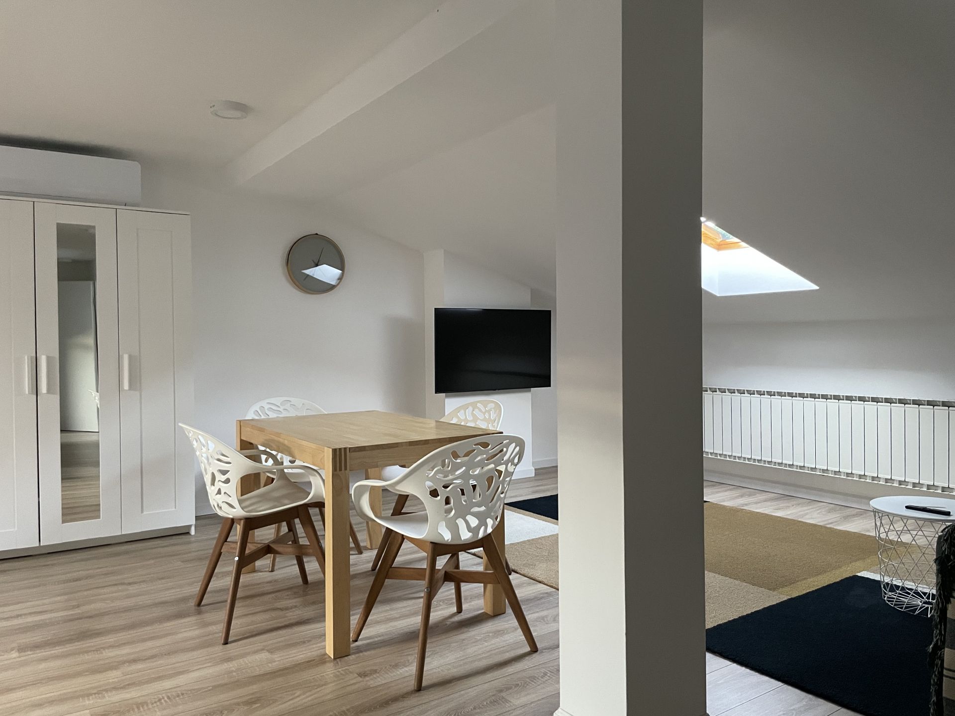 Udoben in svetel apartma v mansardi nudi popolno udobje za družine ali pare, ki iščejo topel in domač ambient.